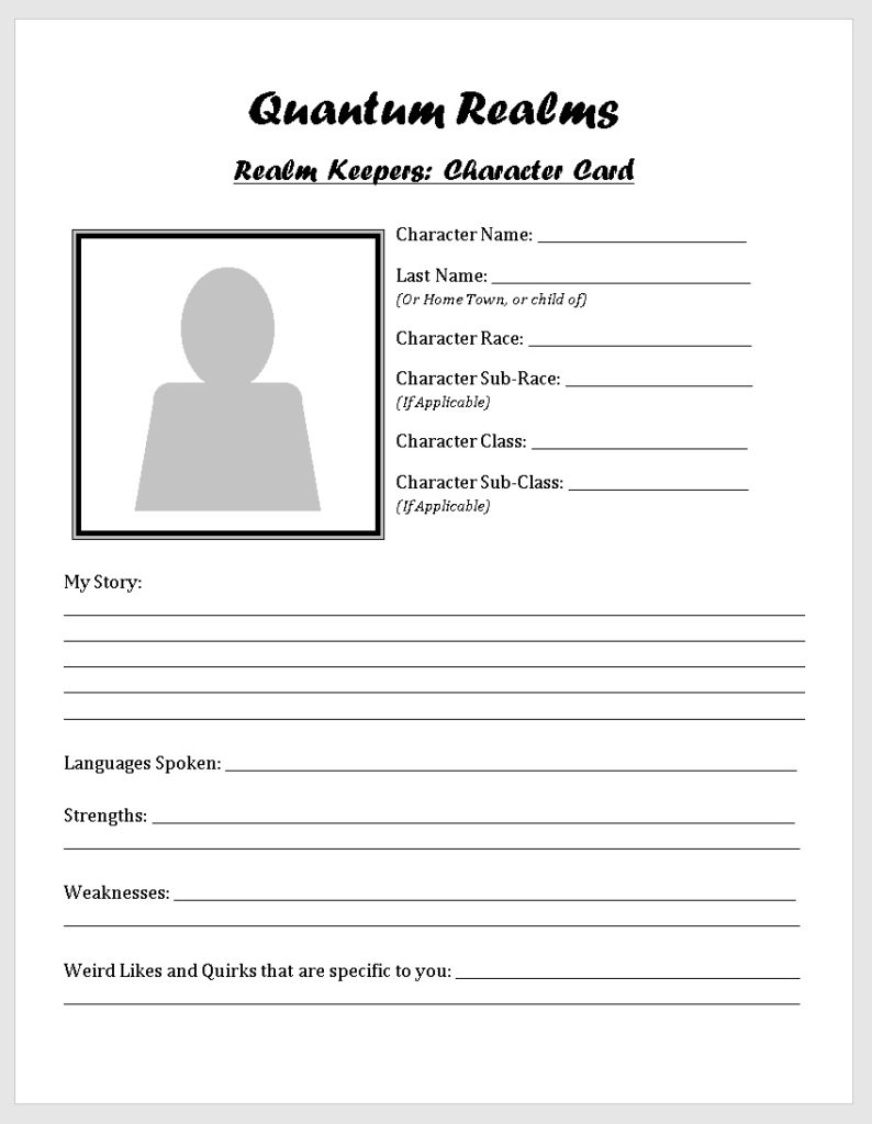 Think you’re Ready to jump into Quantum Realms? Make sure you have your Character Card Filled out! Reference the QR Facts before completing, and remember; suggestions are there to help, not there to limit your imagination!